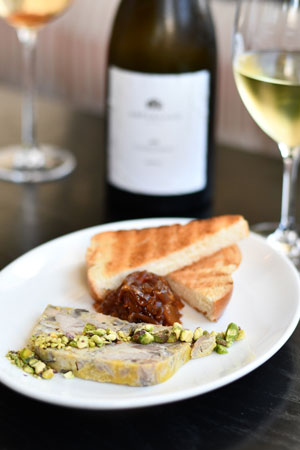 The next offerings were a trio of the House Signature Bread with tallow butter; Duck Terrine with red marmalade, pistachio, mushroom and brioche; and La Delizia Truffle Stracciatella with honey vinaigrette and hazelnut. The bread was light with potato adding extra fluffy texture and taste, while the whipped tallow butter was indulgent. It is easy to see why this is a customer favourite. The terrine was a flavour bomb featuring serious chunks of rich duck flesh and mushroom throughout. It came served with a jammy red onion marmalade and fresh pistachios offering the crunch factor. The third plate of creamy stracciatella carried just a hint of truffle, while the slightly sweet vinaigrette provided perfect balance. The accompanying hazelnuts offered a contrasting, smoky flavour and crunchy texture. These dishes were matched with another offering from Ampersand, in this case, the 2023 Ampersand Estate Chardonnay (Pemberton, WA). This cool climate chardonnay, presented with a luscious nose of kiwifruit and a complex palate of creamy pear, with flint minerality finishing with crisp citrus and subtle oak. It paired particularly well with the stracciatella.