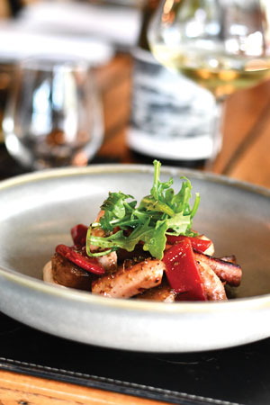 Our next dish was Chargrilled WA Octopus with taramasalata, roasted new potatoes and paprika peppers. The Fremantle octopus was served warm and nicely charred with a good amount of caramelisation. The fish roe base for the taramasalata carried extra seafood flavours through the dish, while the sweet and savoury red peppers lifted the flavour. The wine pairing was Porongurup’s 2023 Lowboi Chardonnay (WA). This chardonnay was an eye opener, exhibiting a fresh green apple nose with a vibrant, almost pineapple-like palate and vanilla nougat and citrus – another great match.